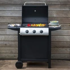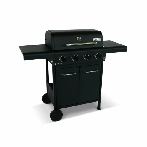 Ce barbecue noir en inox au design linéaire est équipé de 4 feux puissants, de deux grilles de cuisson en acier ainsi que d’une grille pour garder au chaud vos aliments. Un thermomètre est présent pour vous permettre de surveiller la température lors de la cuisson. Sa structure en acier est recouverte de peinture époxy, très durable et résistante. Ses poignées et et brûleurs sont en acier inoxydable et donc résistants à la corrosion.