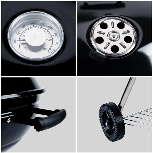 Avec une cuve et un couvercle en acier de qualité recouvert de peinture émaillée haute résistance à la chaleur, le barbecue Georges est un produit de qualité. L’intérieur du capot est également recouvert d’une peinture émaillée noire. De grandes poignées permettent de manipuler le barbecue, même chaud, sans risque et facilement. Le récupérateur de cendres en est pourvu également. Le nettoyage est simple, car le bac récupérateur de cendres du Georges est facile à retirer.