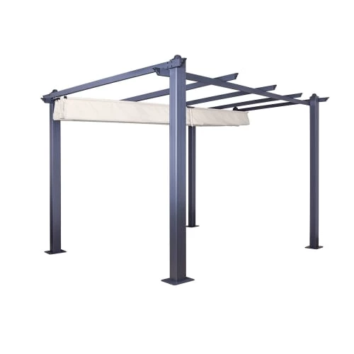 Avril Paris Pergolas Et Tonnelles Tonnelle 3x3m Avec Toile Rétractable En Aluminium Gris