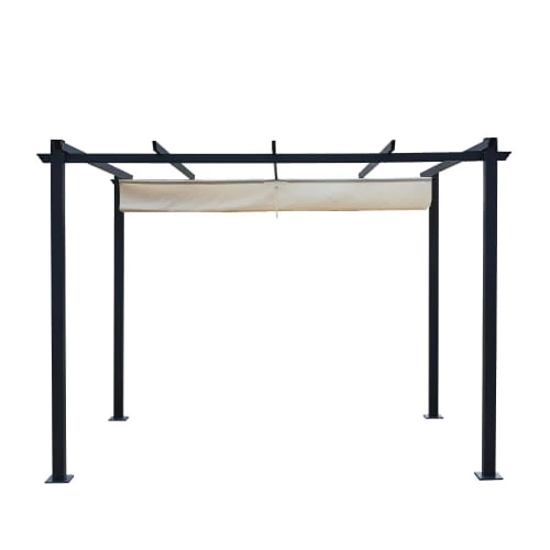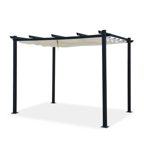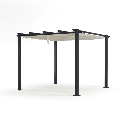 Concept Usine Pergolas Et Tonnelles Pergola Rétractable 3 X 4 M En Tissu Polyester Noir Et Blanc