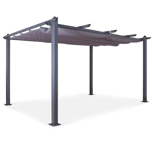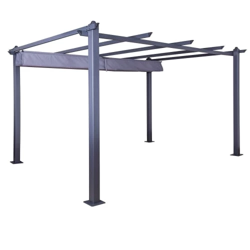 Concept Usine Pergolas Et Tonnelles Pergola Rétractable 3 X 4 M En Tissu Polyester Noir Et Blanc