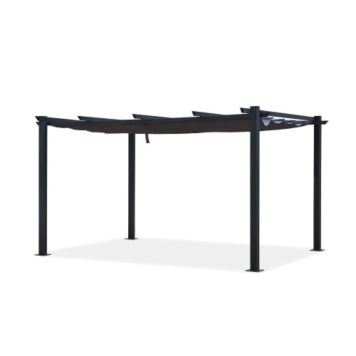 Alice’s Garden Pergolas Et Tonnelles Pergola En Acier Renforcé Avec Rideaux En Toile Taupe 3x4m