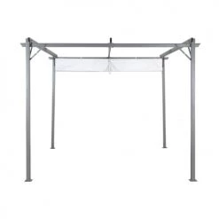 Wadiga Pergolas Et Tonnelles Pergola Acier Gris Et Toile Rétractable Polyester Blanc 290x290x230cm