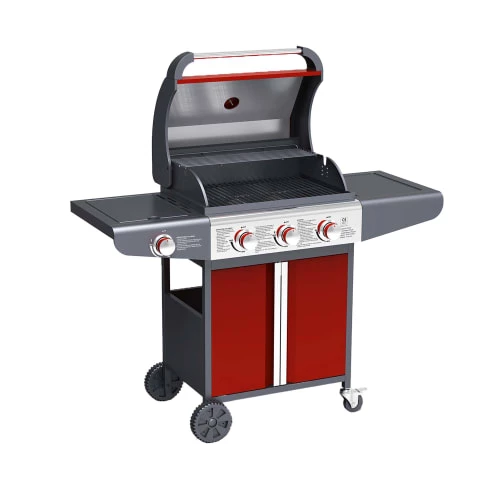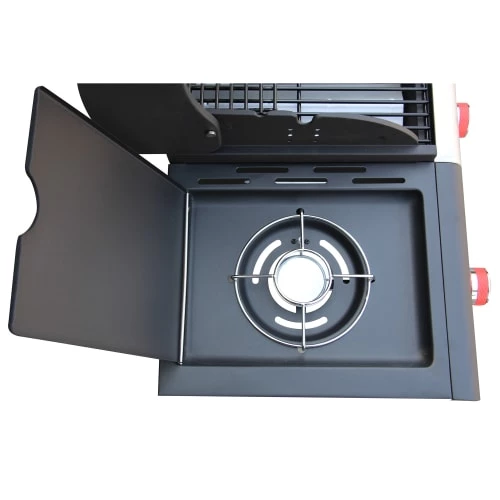 Côté pratique, il est équipé d’une grille de cuisson et sa finition émaillée garde vos aliments au chaud. Ses 4 brûleurs en inox permettent un allumage simple et rapide par piezo, en plus de vous permettre une cuisson optimale réglable de tous vos aliments. De plus, vous adorerez son caractère fonctionnel, possible grâce à son panier avant prêt à accueillir vos ustensiles, épices et tous autres accessoires de votre choix. D’ailleurs, un set d’ustensiles vous est offert. Enfin, sa tablette latérale droite vous permettra de déposer vos plats en toute sécurité.