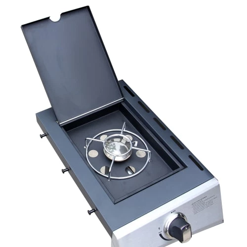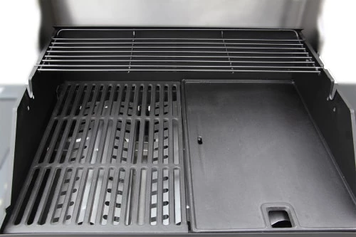 La cuisson est possible sur plancha ainsi que sur grille en fonte, de façon directe ou indirecte grâce à son couvercle de cuisson équipé d’un thermomètre pour le contrôle de la cuisson. Un garde au chaud est également placé au-dessus de votre zone de cuisson pour préserver les aliments déjà cuits.