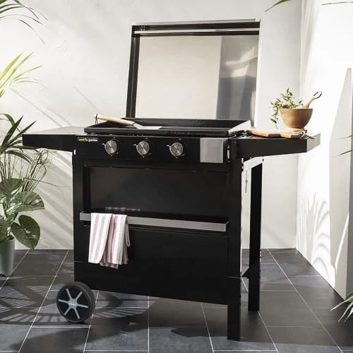 Happy Garden Barbecues Et Planchas Plancha Au Gaz 3 Brûleurs Plaque En Fonte Noire Sur Chariot