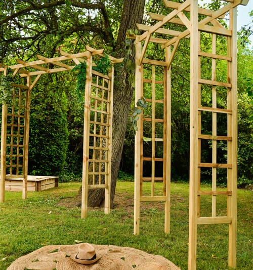 Données techniques: 4 poteaux de section 4.5×4.5 cm, 2 treillis et 5 cavaliers.