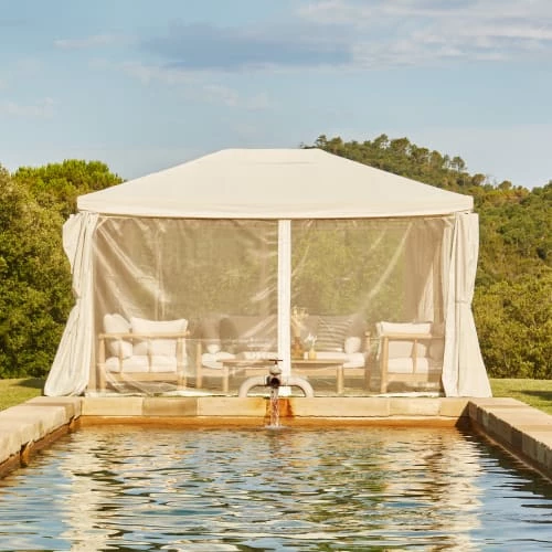 Maisons Du Monde Pergolas Et Tonnelles Tonnelle De Jardin En Métal Imitation Bois Et Toile écrue