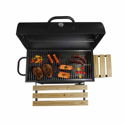Tectake Barbecues Et Planchas Barbecue Charbon 2 Cuves Avec Thermomètre Noir