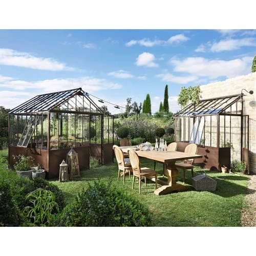 Vous avez la main verte et vous voulez protéger vos plantes des gels hivernaux ? Découvrez la demi-serre Tuileries. Une structure en acier avec une finition métal rouillé pour cette véranda de jardin que vous aménagerez dans votre extérieur. Un abri de jardin au look industriel efficace doté de vitres en verre trempé pour la toiture. Une demi-serre esthétique et idéale pour les amoureux du jardinage.