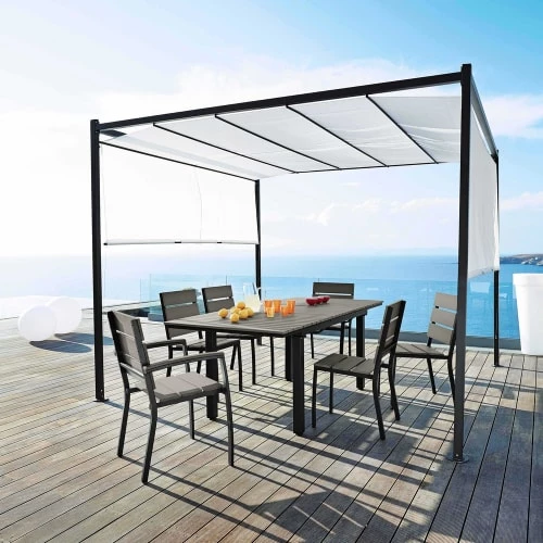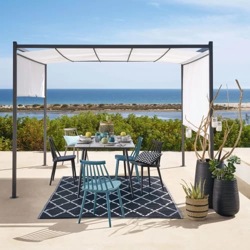 Envie de profiter de votre extérieur sans pour autant vous exposer en plein soleil ? Aménagez un coin ombragé avec cette tonnelle de jardin écrue H220 MALAGA en métal gris. Pratique, cette tonnelle écrue vous abrite à l’aide d’un voilage réglable par système de câble : vous pouvez descendre le voilage d’un côté comme de l’autre. Résistant aux UV, cet abri de jardin accompagnera vos déjeuners en plein air.