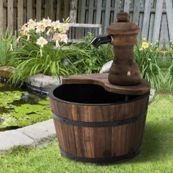 Outsunny Objets Déco De Jardin Fontaine De Jardin Tonneau Pompe Incluse