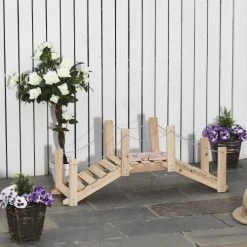 Outsunny Objets Déco De Jardin Pont De Jardin Balustrade – Pont De Bassin – Passerelle Bois Sapin