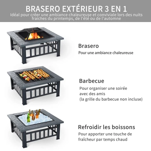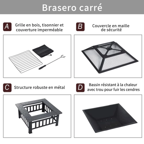 – Dim. brasero : 60,5L x 60,5l x 11,5H cm