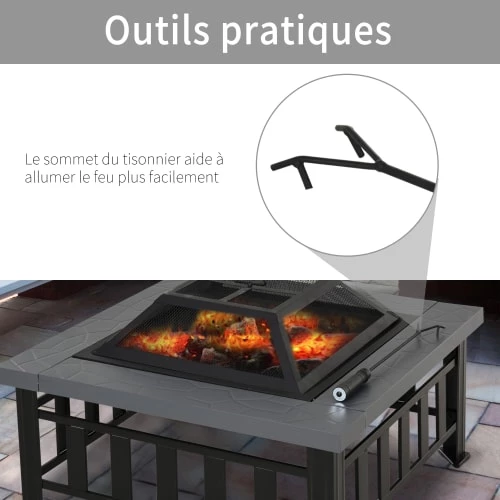 – Accessoires fournis : tisonnier + housse de protection