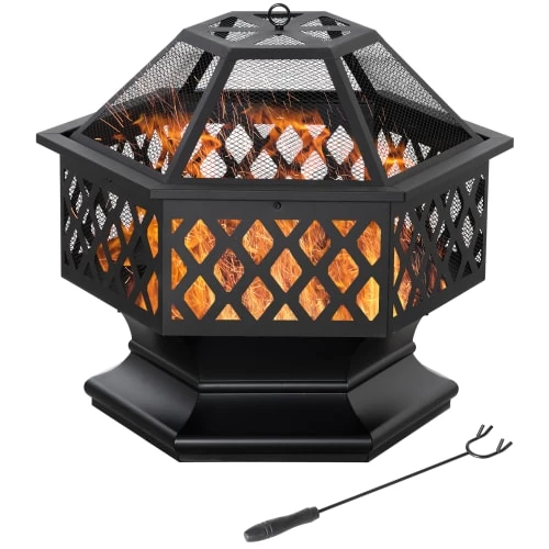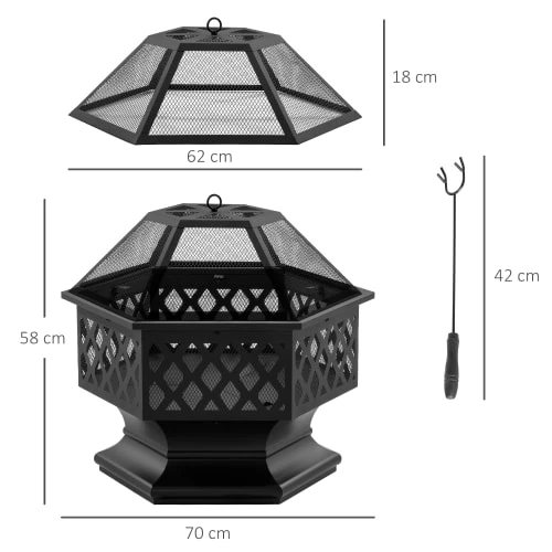 – Brasero de forme hexagonale en métal coloris noir est idéal pour sublimer votre extérieur