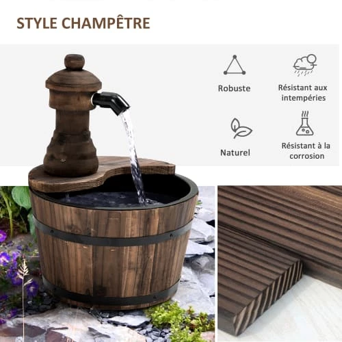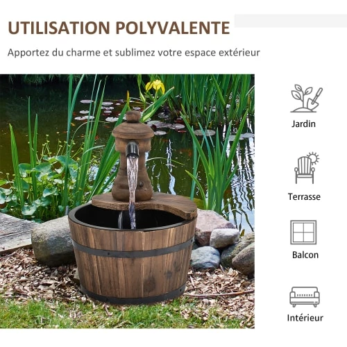 – Fontaine tonneau à eau qui ajoutera un charme rustique et champêtre très tendance sur votre parterre de fleurs
