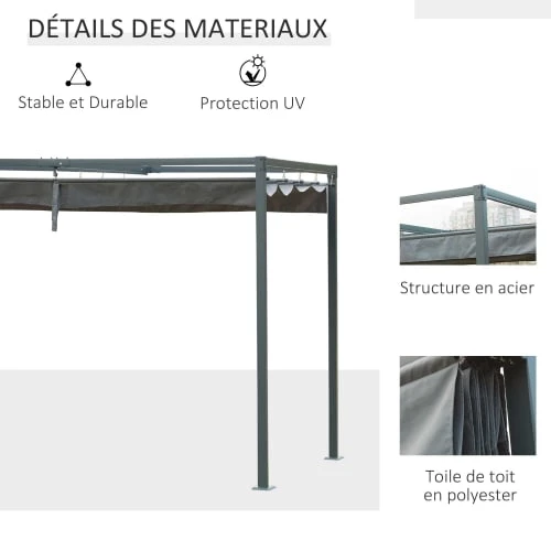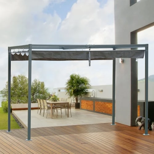 – Pergola rétractable idéale pour se construire une surface ombragée à l’extérieur afin d’installer un salon de jardin, un ensemble à diner de jardin, un barbecue, etc…