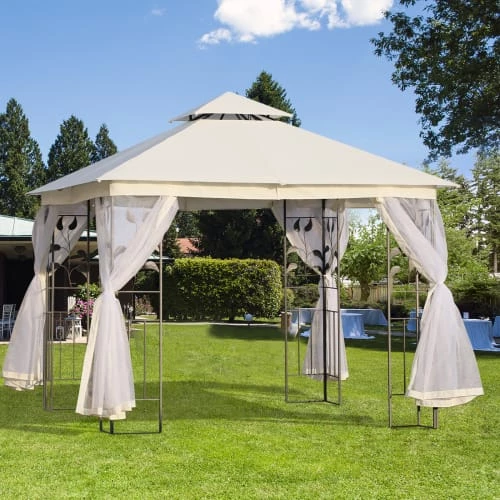 Cette magnifique tonnelle style colonial pourrait vous offrir de l’ombre ou vous le souhaitez ! C’est est un barnum de jardin design et pratique idéal pour toute la famille ! Equipé d’un toit double et de 4 moustiquaires, vous et vos invités seront parfaitement protégés contre le soleil et contre les insectes tout en profitant d’un air respirable et agréable. En plus, l’installation de cette tonnelle de 9 m² de surface sol est facile et rapide. Laissez-vous tenter !