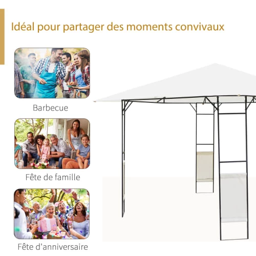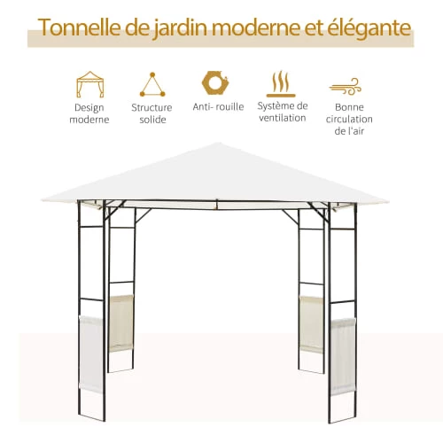 – Tonnelle barnum pavillon de jardin style contemporain épuré mélant sobriété et élégance : toile de toit coloris crème, toiles latérales assorties pour plus de raffinement