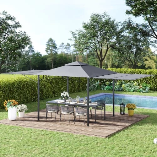 – Gazebo 3 x 3 m avec auvents latéraux offrant un espace spacieux pour accueillir de nombreuses personnes