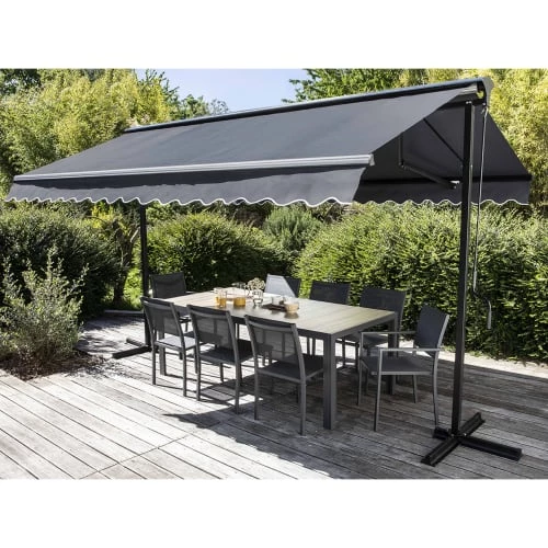 Concept Usine Pergolas Et Tonnelles Pergola Rétractable 3 X 4 M En Tissu Polyester Noir Et Blanc