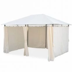 Alice’s Garden Pergolas Et Tonnelles Pergola En Acier Renforcé Avec Rideaux En Toile écrue 3x4m