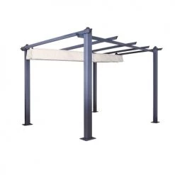 Avril Paris Pergolas Et Tonnelles Tonnelle 3x3m Avec Toile Rétractable écru En Aluminium Gris