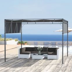 Outsunny Pergolas Et Tonnelles Pergola Rétractable Polyester Haute Densité Métal époxy Gris