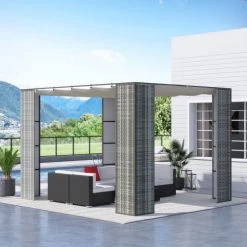 Outsunny Pergolas Et Tonnelles Pergola Rétractable Métal Noir Double Toile Polyester Gris