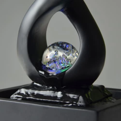 La fontaine Zen’Light Amor moderne est l’élément décoratif qui manque à votre intérieur pour créer une atmosphère zen essentielle à vos moments de détente et de relaxation. Elle propose un joli écoulement d’eau dans une forme contemporaine pour un rendu visuel très apaisant. Une boule en verre est entraînée en rotation par le mouvement de l’eau. Illuminée par un éclairage led à variation de couleur, elle apporte une touche de simplicité. La fontaine amor existe en 3 coloris : blanc, noir, noir et blanc.