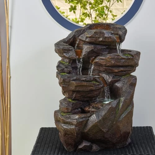 La fontaine Zen’Light Niagara est parfaitement adaptée pour une utilisation en intérieur ou en extérieur. Elle est l’élément parfait pour créer une atmosphère zen essentielle à vos moments de détente et de relaxation. L’eau jaillit en haut de la fontaine puis se déverse indéfiniment le long du décor rocheux et créant à chaque niveau des piscines illuminées. Le rendu est réellement magique et fera de cette fontaine un élément important dans l’agencement de votre jardin ou terrasse. Son éclairage souligne le mouvement d’eau et met en valeur cette fontaine dans une ambiance cosy et intime.